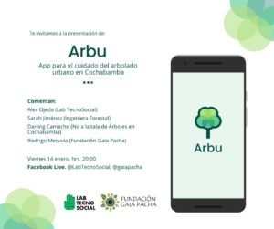 Te invitamos a la presentación de #Arbu, una aplicación móvil para promover el cuidado de árboles urbanos en Cochabamba. Permite: –...